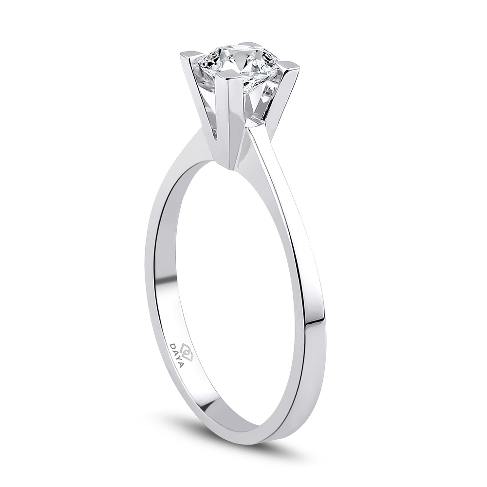 0.50 Karat, Brilliant Tektaş Yüzük , F renk SI2 Berraklık, HRD Sertifikalı, verygood/verygood/verygood, 14k Altın
